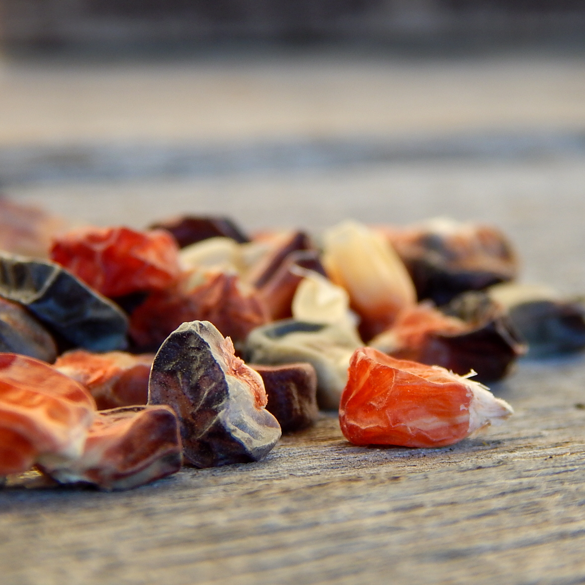***NOT TO WA, NT*** (Zea mays) Heirloom (possible Indian). Short bush to 1.2m high producing miniature cobs with beautiful, deep magenta / strawber