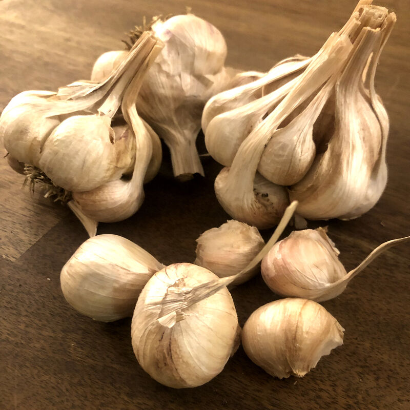 (Allium sativum var. ophioscorodon) Heirloom from France. Artichoke type. A mid-season garlic with lively flavour which persists even when cooked o