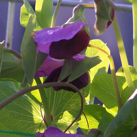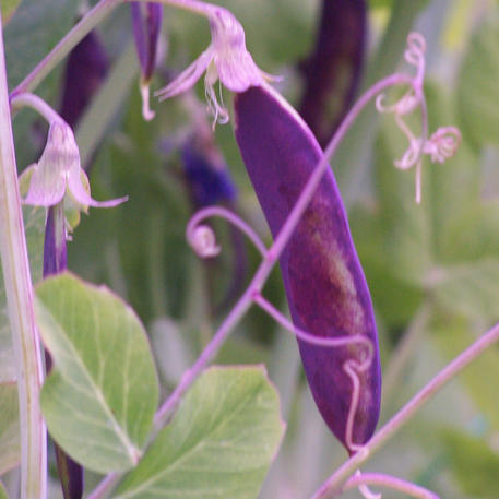 (Phaseolus vulgaris) Heirloom also known as 'Preacher Bean'. Plant to 3m tall with attractive purple flowers producing long, thin green pods with pu
