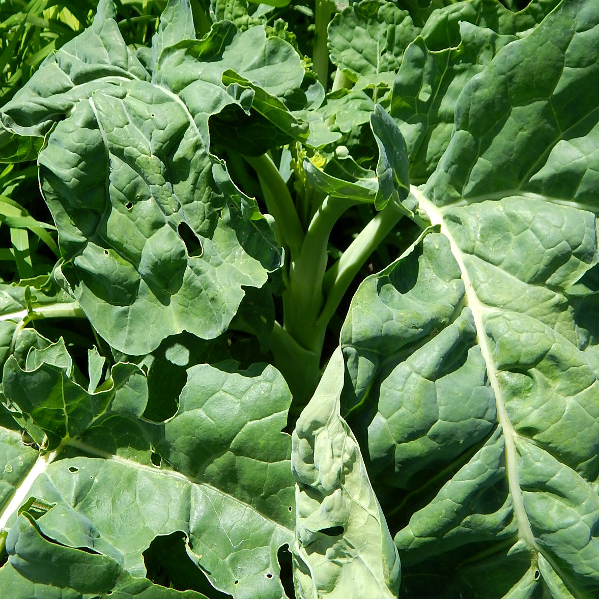(Brassica napus var. pabularia) Extremely hardy. Quick growing. Large, blue-green, slightly curled leaves, shaped like a feather. Non-heading. Grow